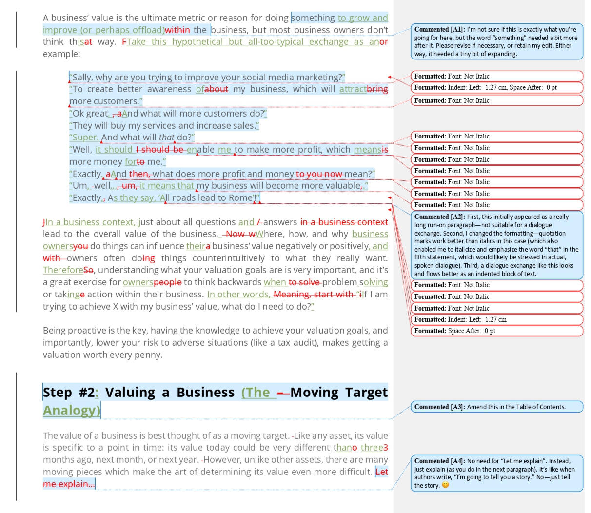 Example of a TRACKED EDIT performed for a business valuation e-book